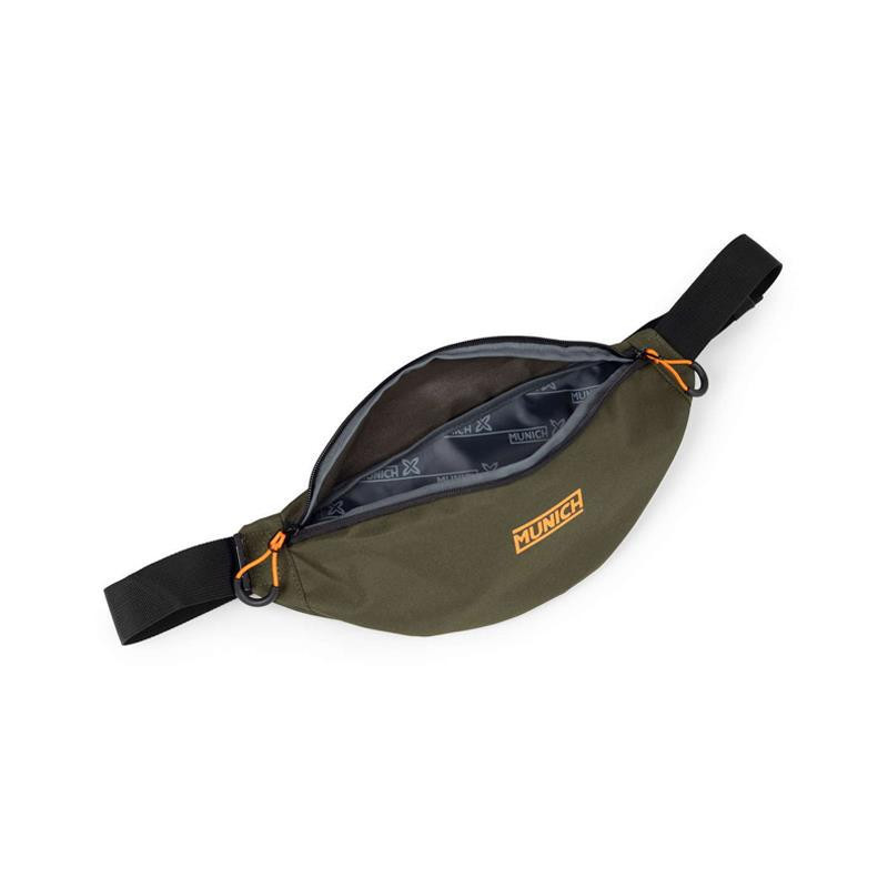 Lleva siempre las manos libres con esta riñonera de Munich. El complemento perfecto para lucir un estilo urbano y poder llevar tus esenciales de forma seguro con su cierre de cremallera. Gracias a su correa ajustable con cierre de hebilla podrás lucirla en la cintura o el hombro según la ocasión.